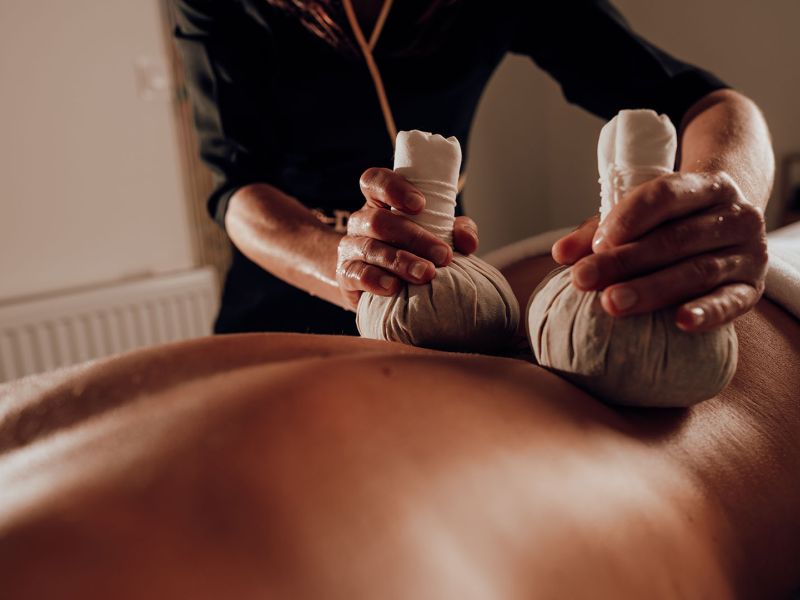 Massage aux ballotins de plantes chaudes